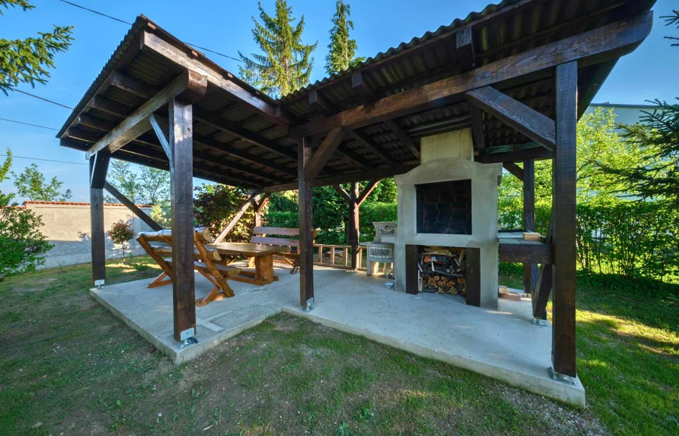 Outside, the villa boasts a charming veranda where guests can enjoy the fresh air and picturesque views. The BBQ area offers a delightful setting for outdoor dining, allowing visitors to savor delicious meals amidst the peacefulĀ surroundings.
